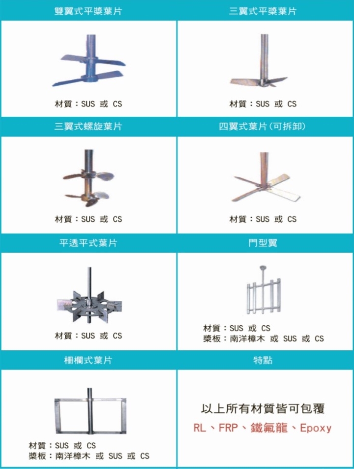 各式攪拌翼之型式